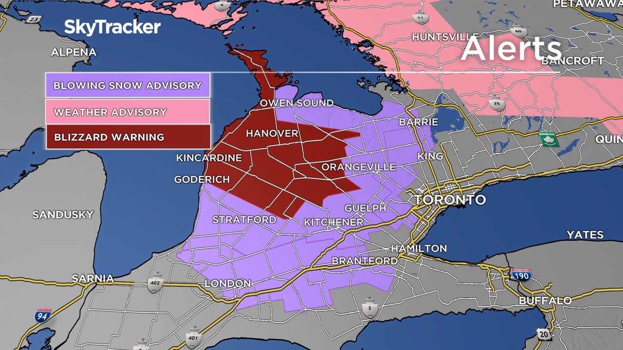 A blowing snow advisory has been issued for London and Middlesex as a result, and blizzard warnings are in place for northern Huron and Perth counties.