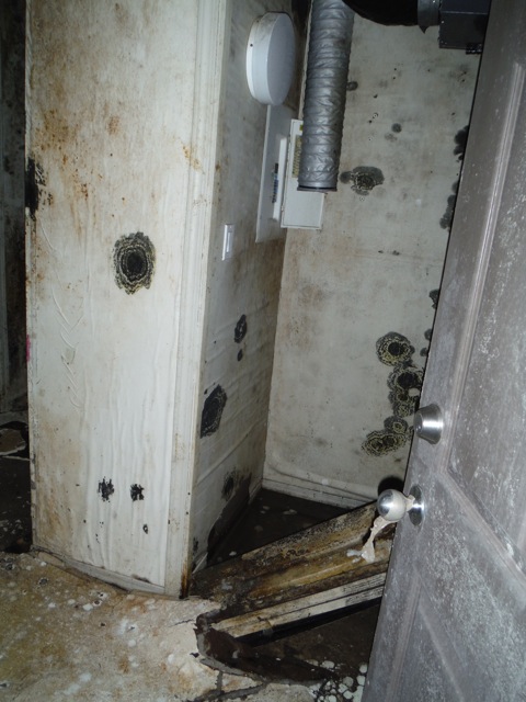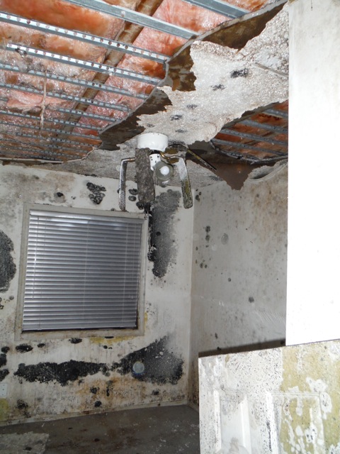 “We had our inspectors going through the buildings two weekends ago, and because of the ongoing shifting of the buildings, the roof drains have now split away from the seals, and for – as far as we can tell, about the last year and a half – water has been pouring down inside these buildings. So now the interior of these buildings are covered with black and white mould and we’ve even got grass and mushrooms growing in the carpets.”