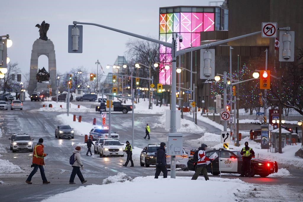 Ottawa police said nearly 100 protester vehicles have been towed, including 20 that were removed from a site on Coventry Road that demonstrators were allegedly using as a base camp. Police also promised officers would remain there to prevent anyone from returning to the site.