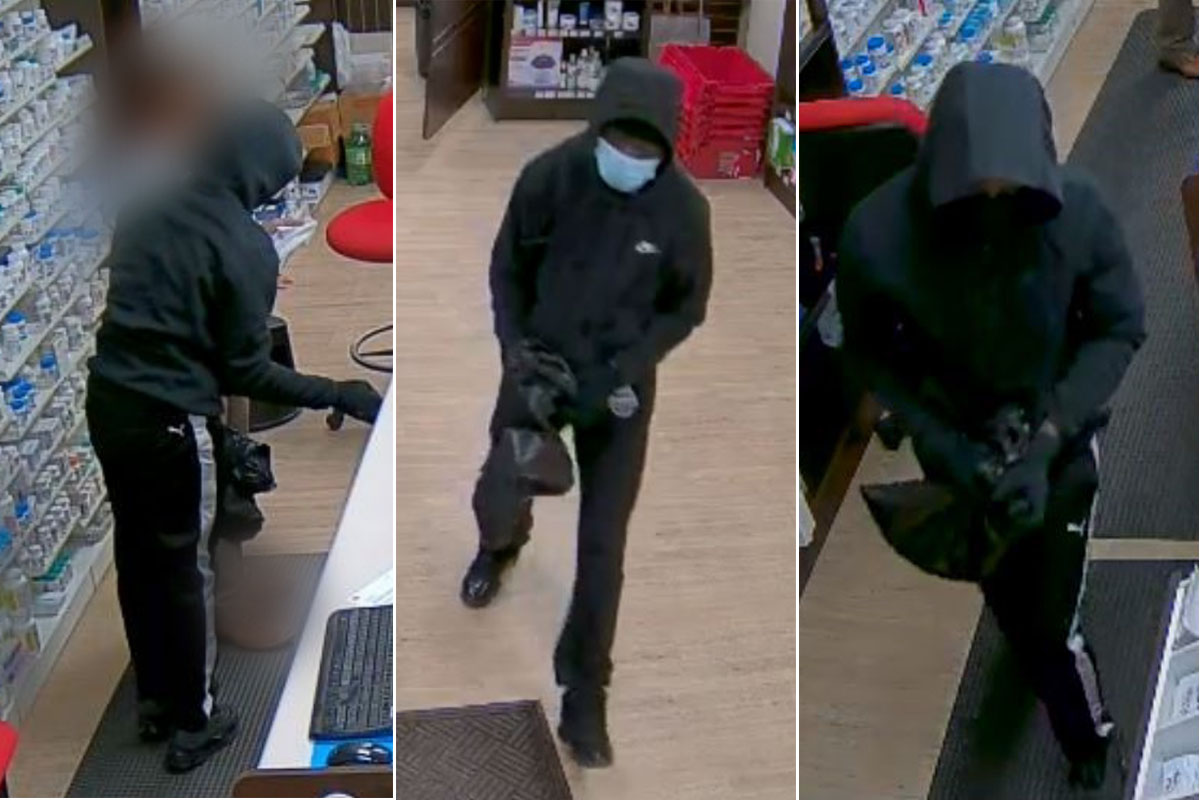 Police say two men entered the pharmacy and demanded merchandise from a store clerk.