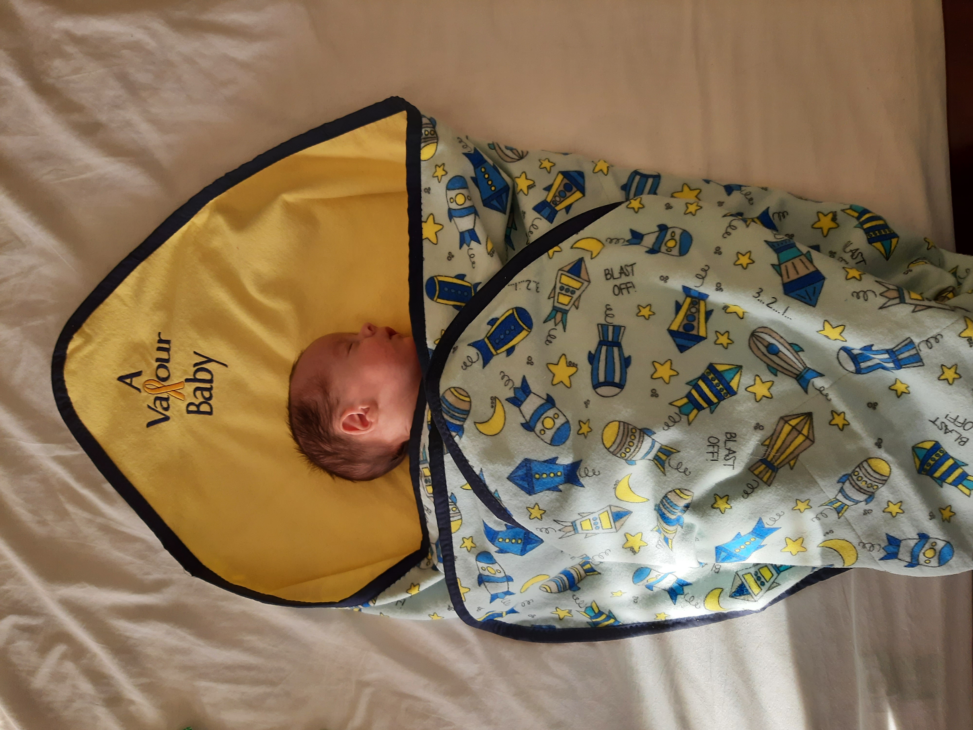 The Valour Baby program offers families a keepsake blanket. They are homemade by volunteers from the community.
