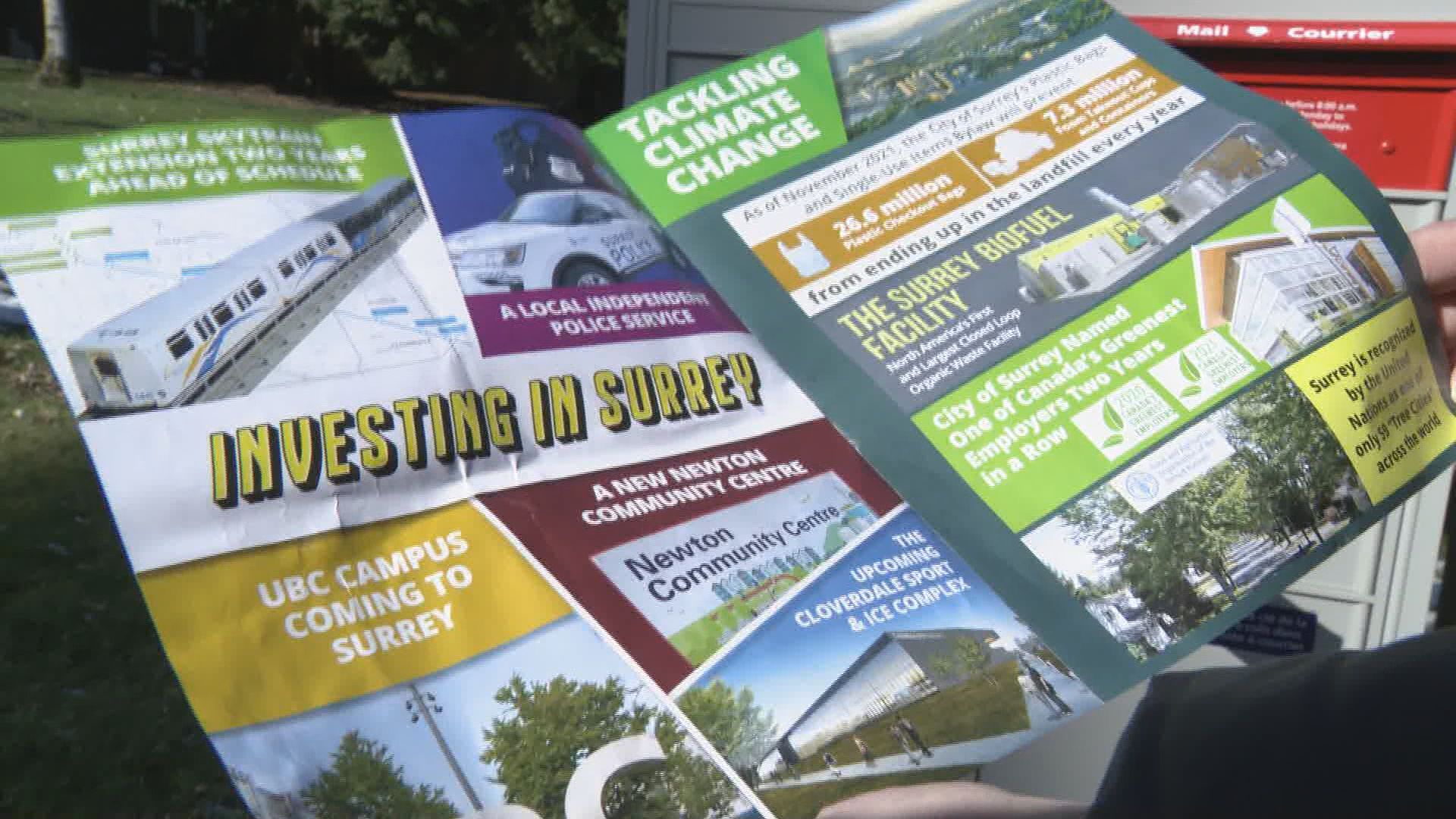 The literature lists a number of accomplishments the slate claims credit for, including the new Surrey Police Service, a SkyTrain extension to Langley, a new biofuel facility and a UBC campus coming to Surrey.