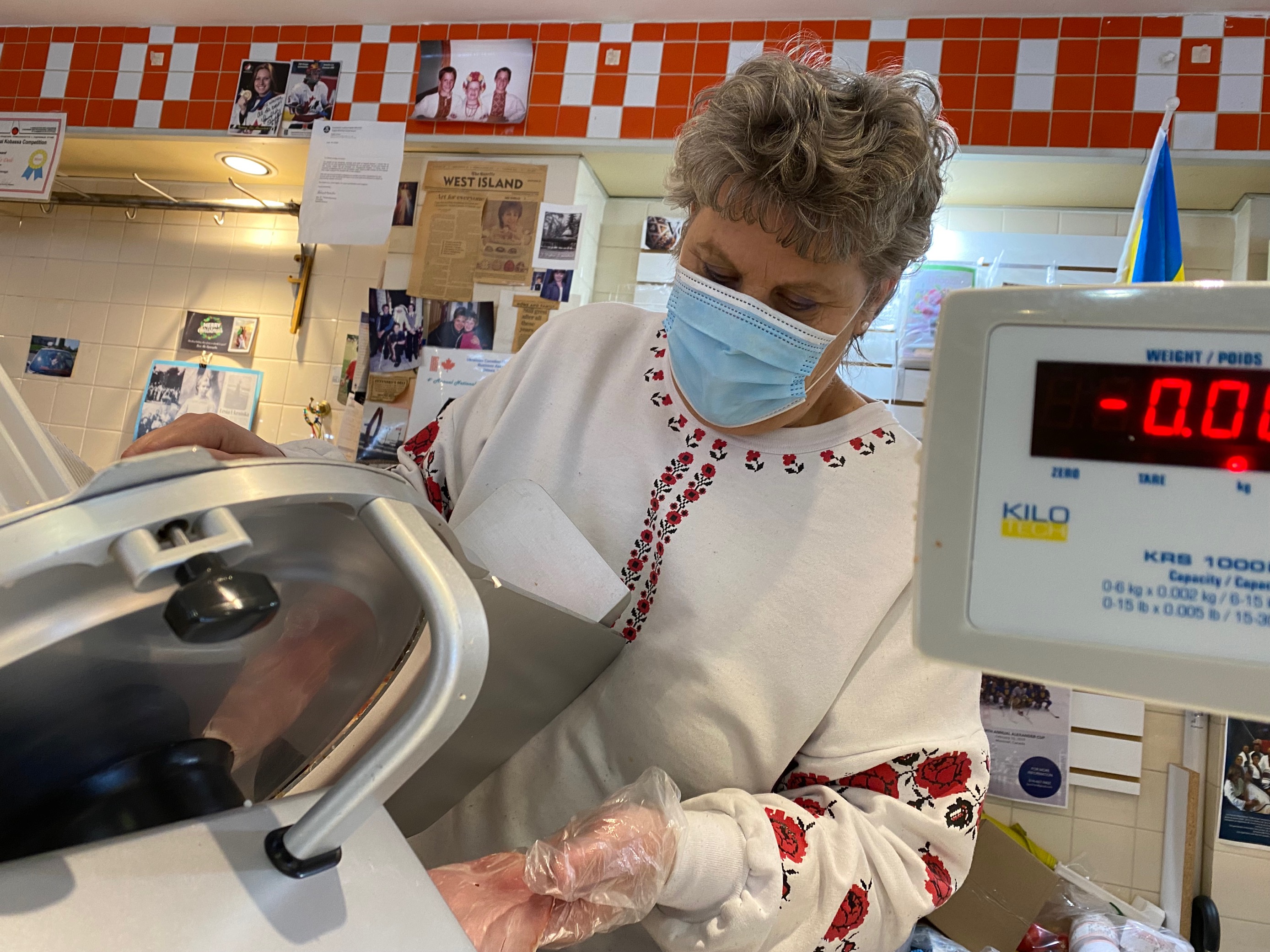 Angel Zytynsky stands behind the counter of her family’s longstanding Ukrainian deli on Montreal’s Beaubien Street, donning a white shirt embroidered with red flowers.
