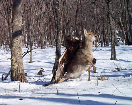 Golden eagles typically eat small birds or mammals, but they’ve also been known to target deer. It’s rare for a camera to catch such an attack in progress.