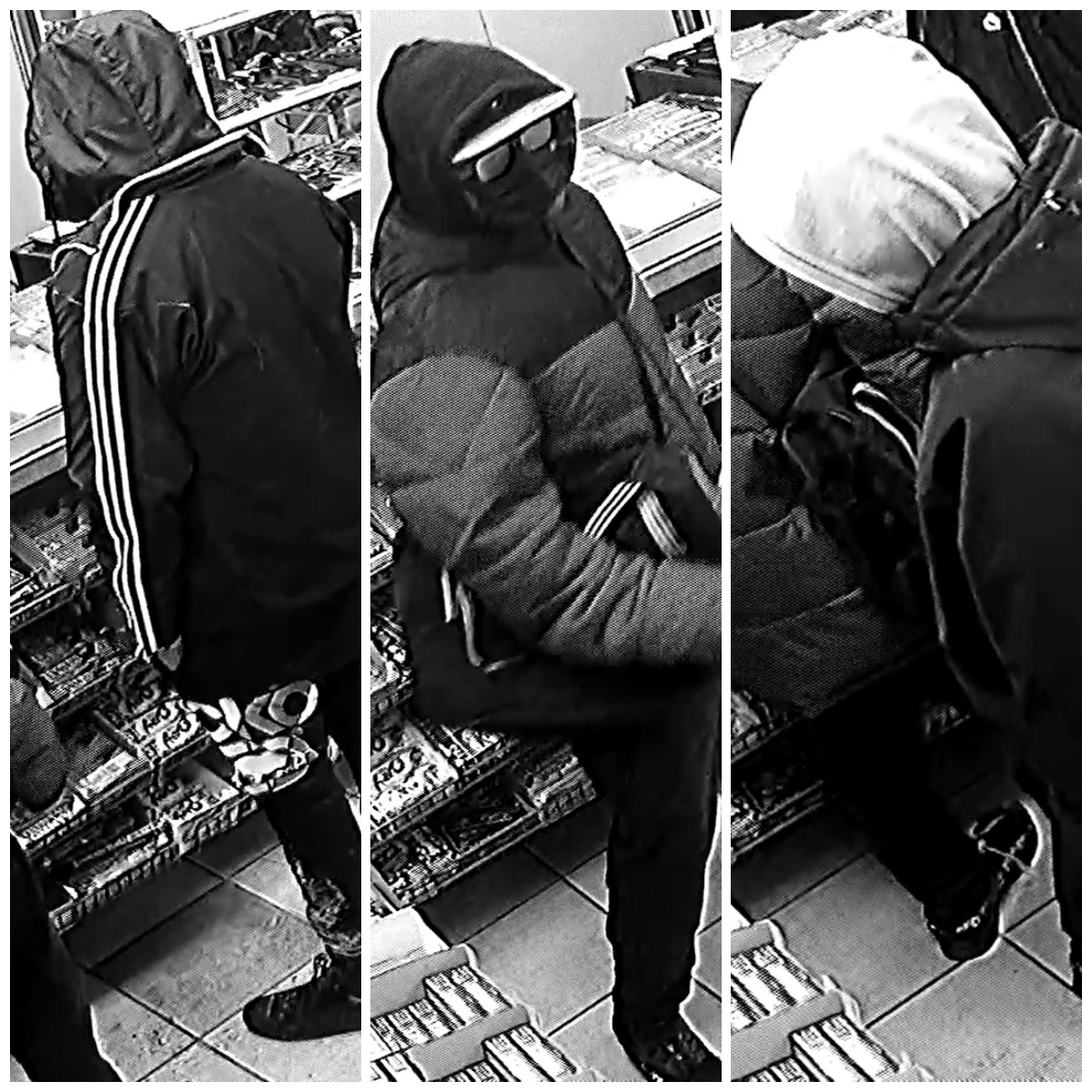 The third suspect was wearing a black jacket, a light-coloured hoodie, and black Crooks and Castles pants.