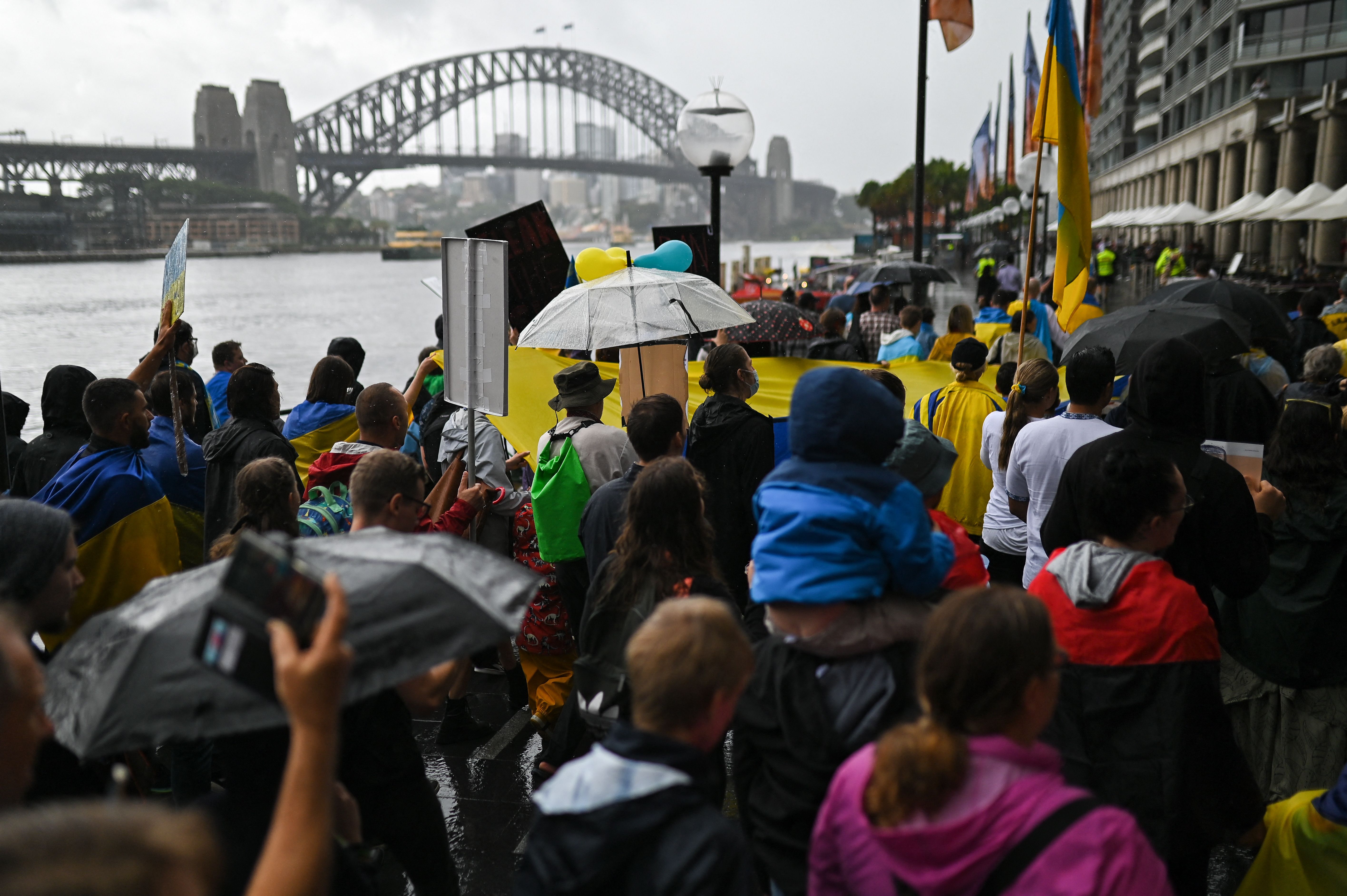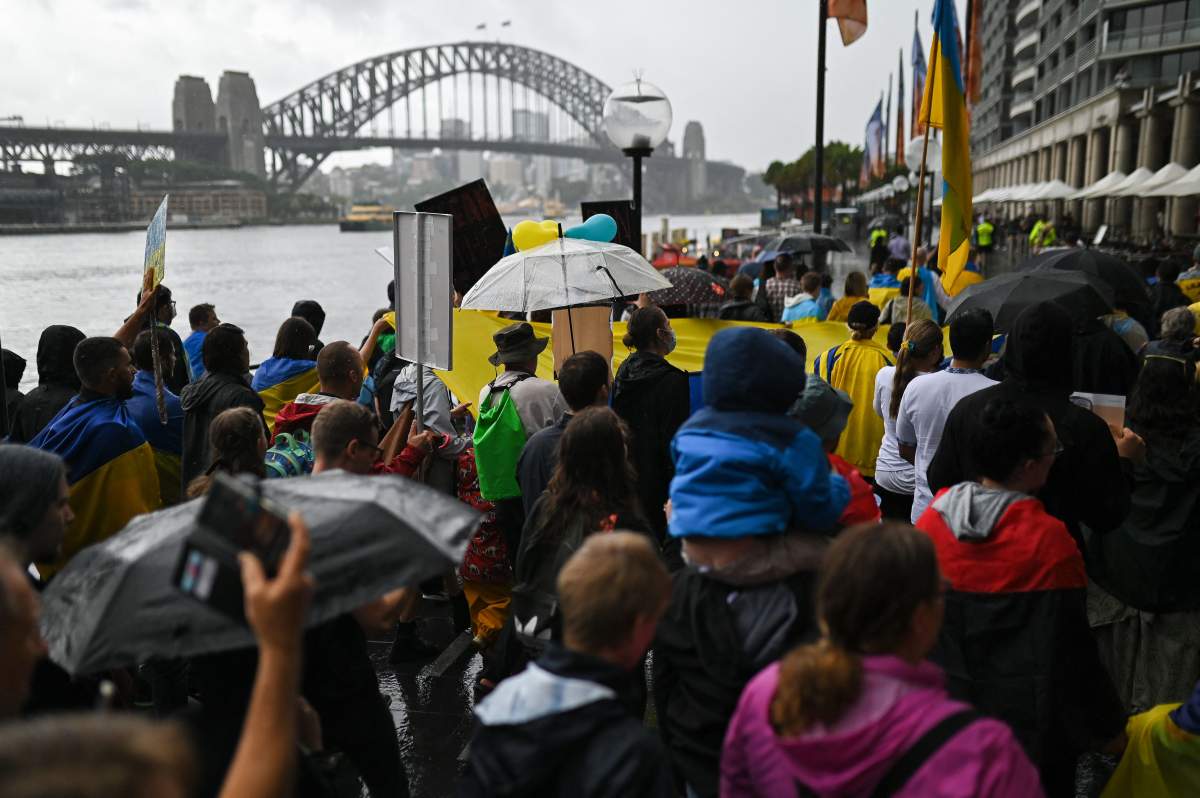 Several hundred people marched through heavy rain in Sydney chanting “Ukraine will prevail,” while protesters in Tokyo called for Russia to be expelled from the United Nations Security Council for the assault on its neighbor.