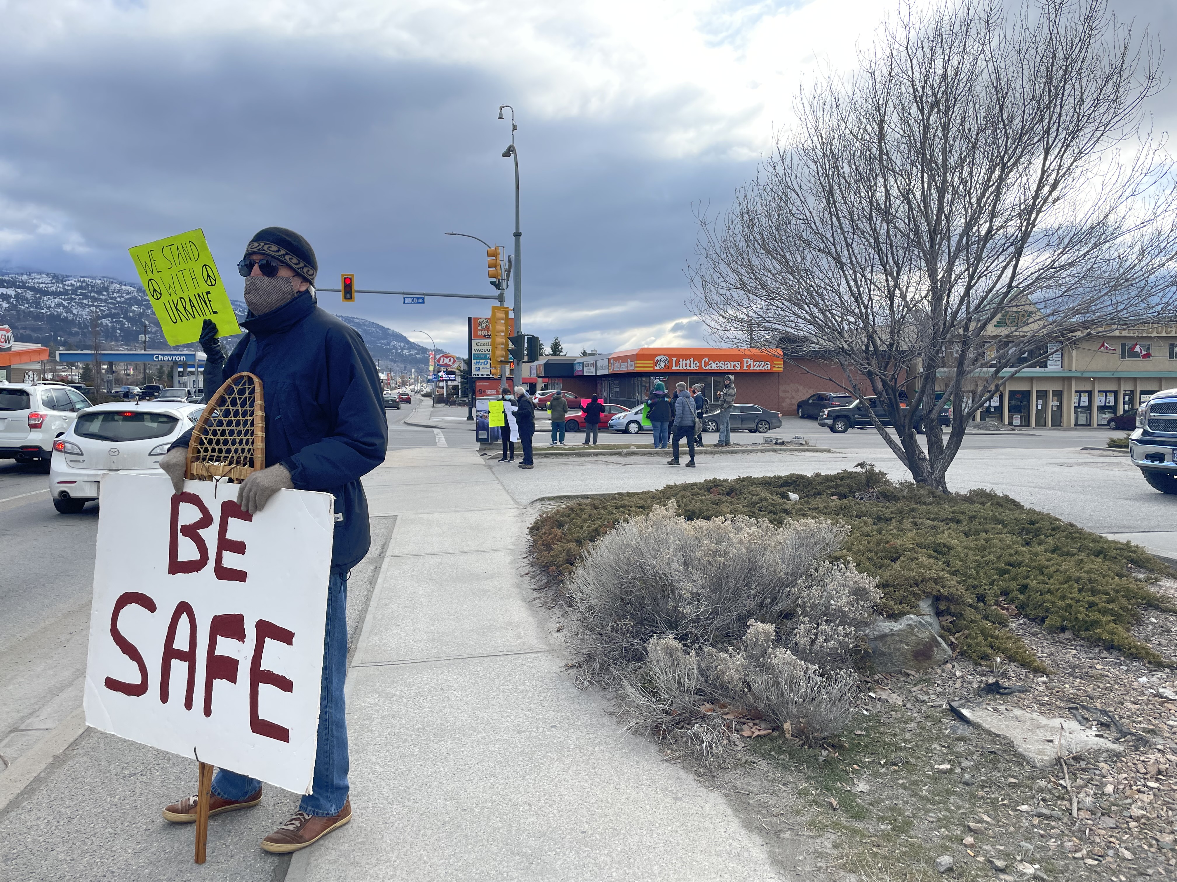 A small group of protesters gathered on Main Street in Penticton, B.C., for a ‘kindness and gratitude rally.’ The counter-protest was held to show support for vaccines, science and healthcare workers.