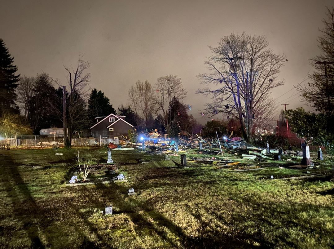 When officers arrived they detected a “strong odor (of) natural gas coming from the debris,” police said.