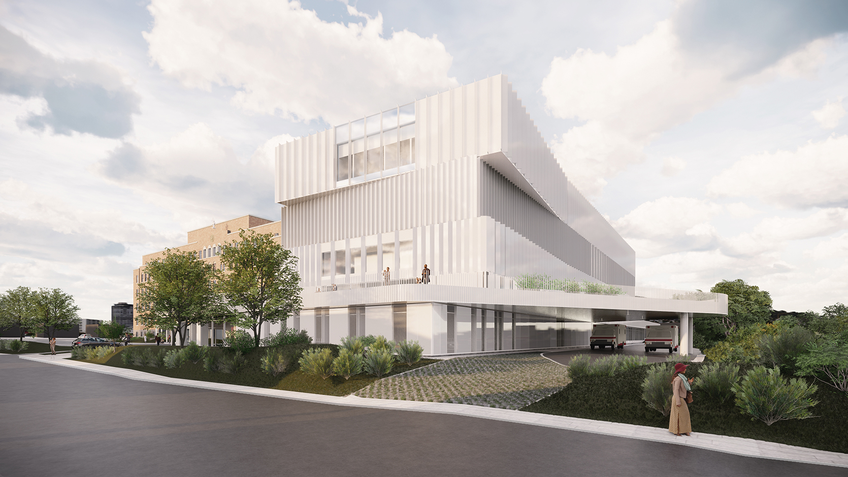 Starting in May, the new hospital wing will begin taking shape on the south end of the building, facing the park.