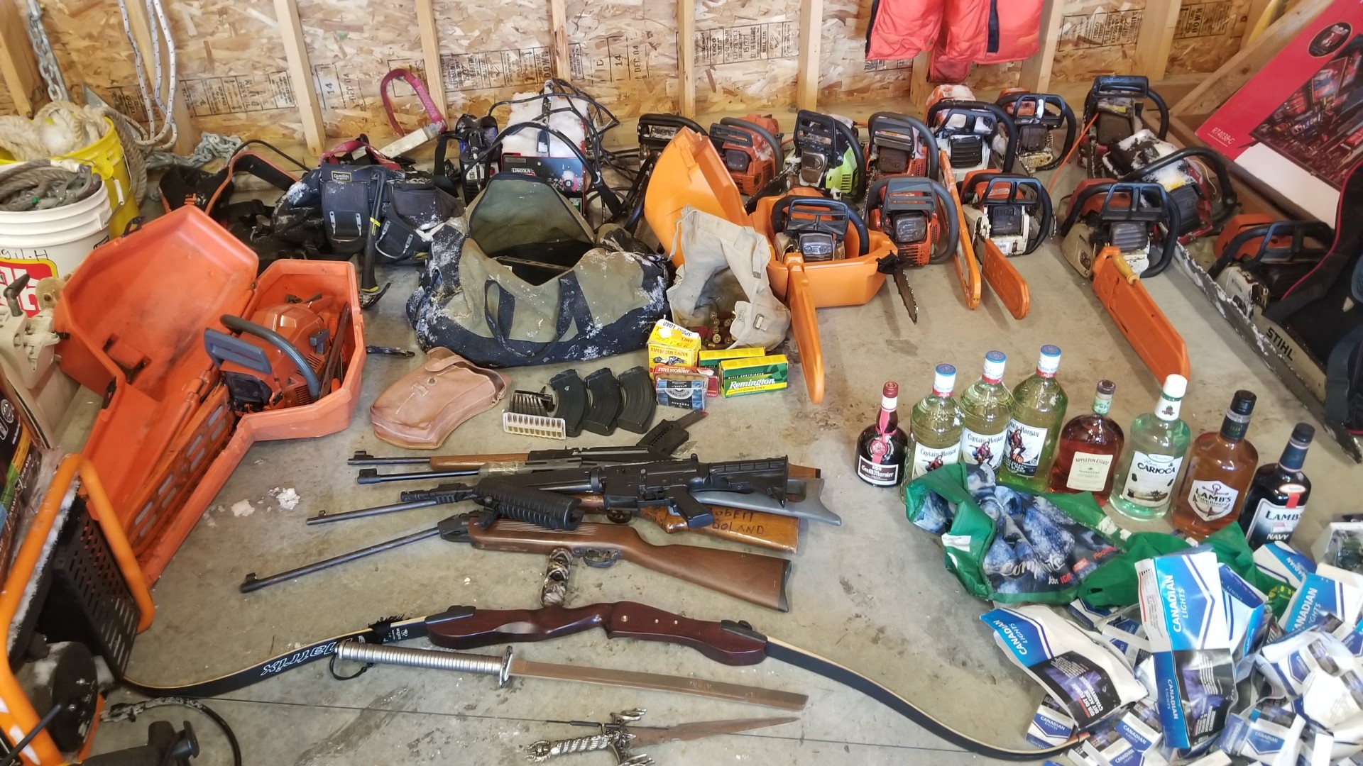 “Also seized during the search was a substantial quantity of stolen property including an ATV, an outboard motor, chain saws, power tools, construction equipment, bicycles, jewelry, liquor and consumer electronics,” the release said.