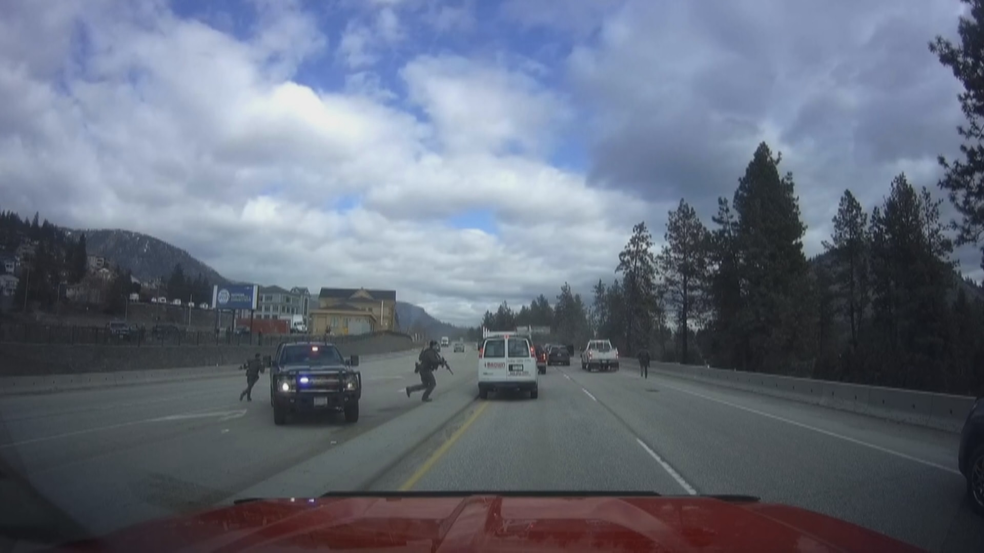 Roughly three hours after the first calls to police, around 10:50 a.m., the RCMP said its emergency response team stopped the stolen vehicle and the suspect driver on Grizzly Road in West Kelowna.