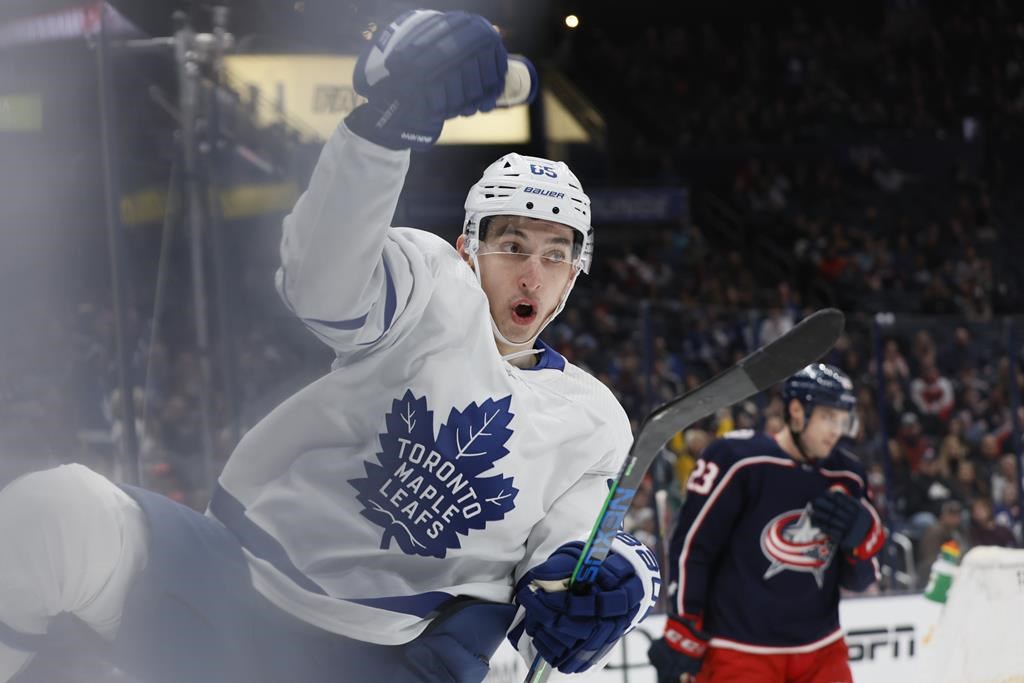 Mikheyev beat Merzlikins 8:06 into the game before Marner scored off a rebound from Bunting’s long shot with 5:59 left in the first. Matthews got his league-leading 40th goal about three minutes later with a wraparound shot to the far post.