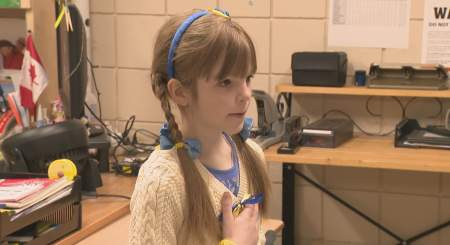 The Grade 4 student held her hand to her heart as the Ukranian national anthem played over the morning announcements at St. Sylvester School in Calgary’s northwest Wednesday morning.