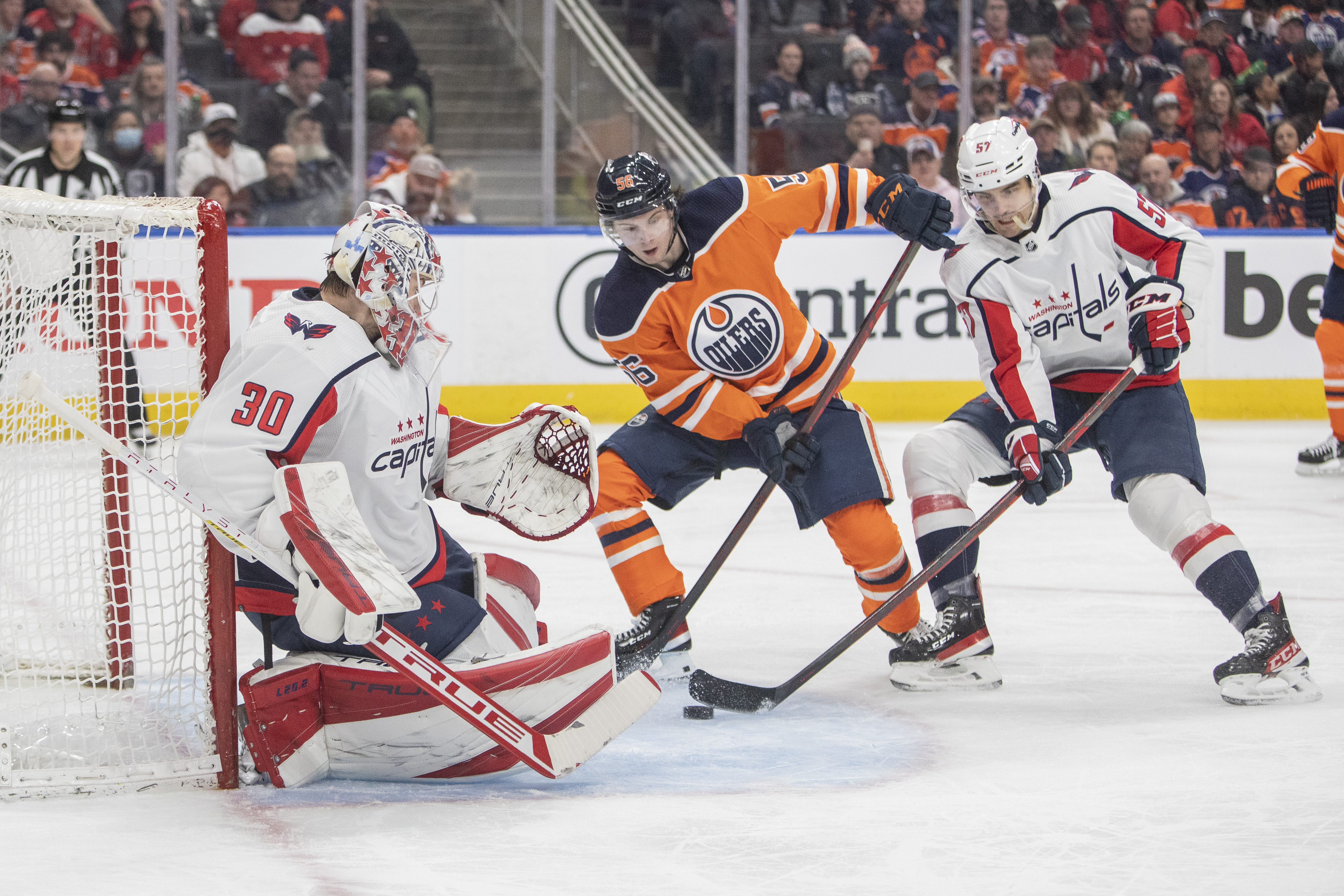 After going 0 for 4 on the power play on Monday in Calgary, the Oilers were buzzing on their two-man advantages in the first period. However, Caps goalie Ilya Samsonov came up with several big saves.