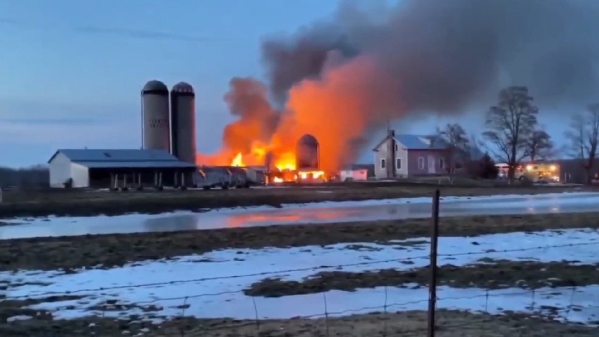 Video of fire shows a portion of the barn in flames, along with heavy black smoke.