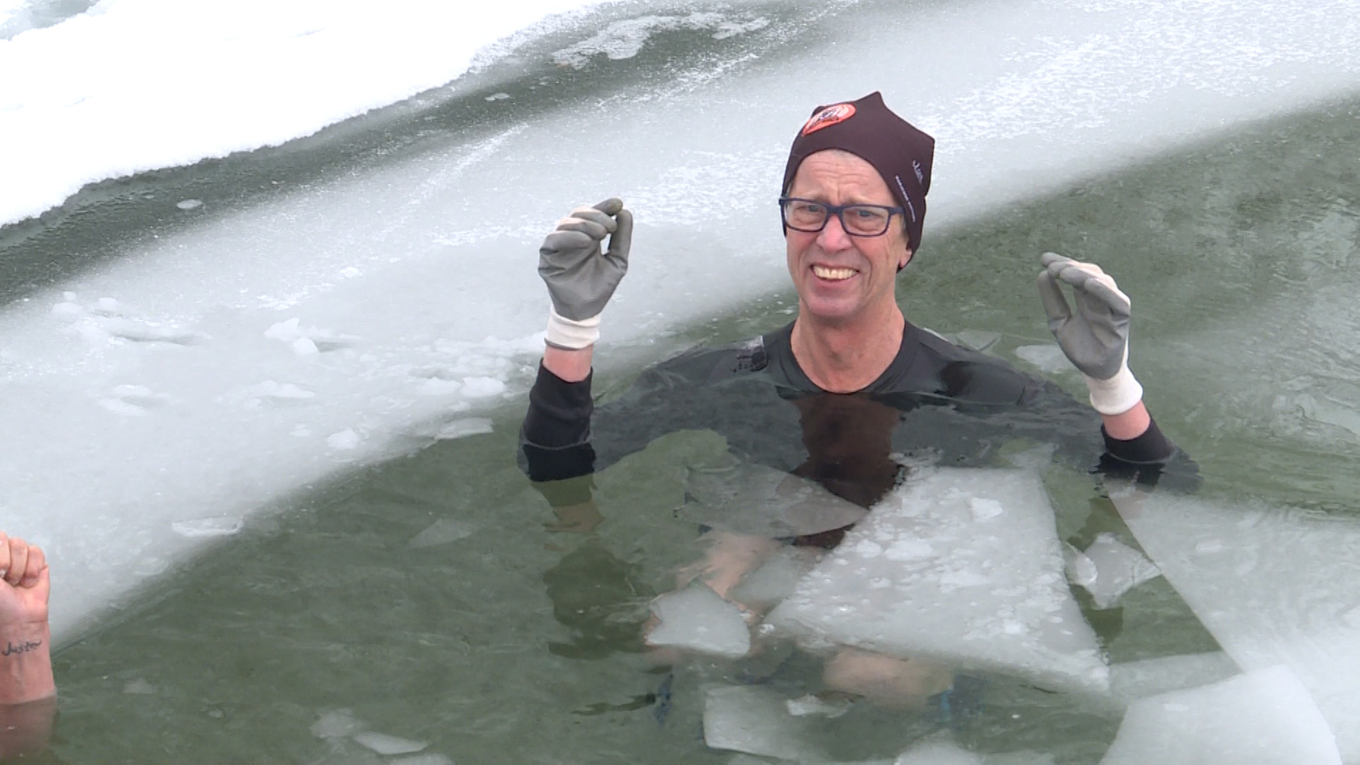 “When you go into the water, it’s a shock,” he says. “The water is probably just above freezing right now, It’s definitely a shock. It wakes you up. But when you come out of the water, you feel fantastic.”