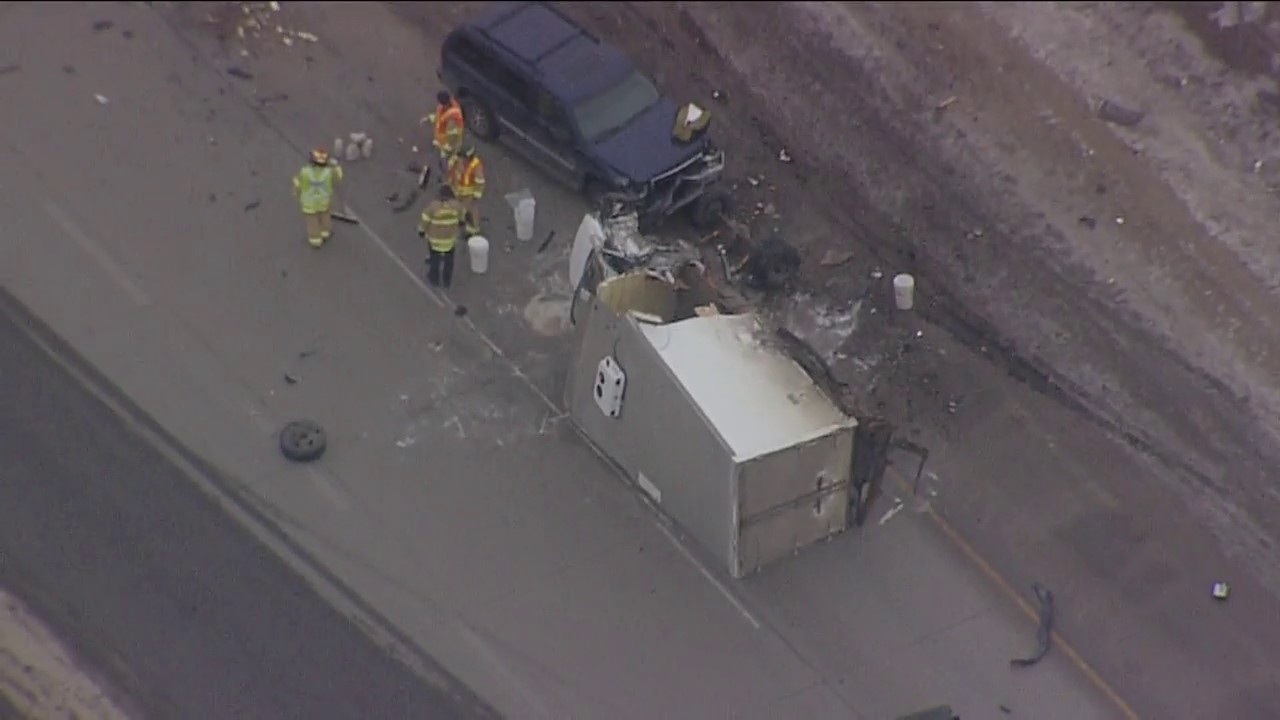 The truck then collided with a cube van and another vehicle, police said.