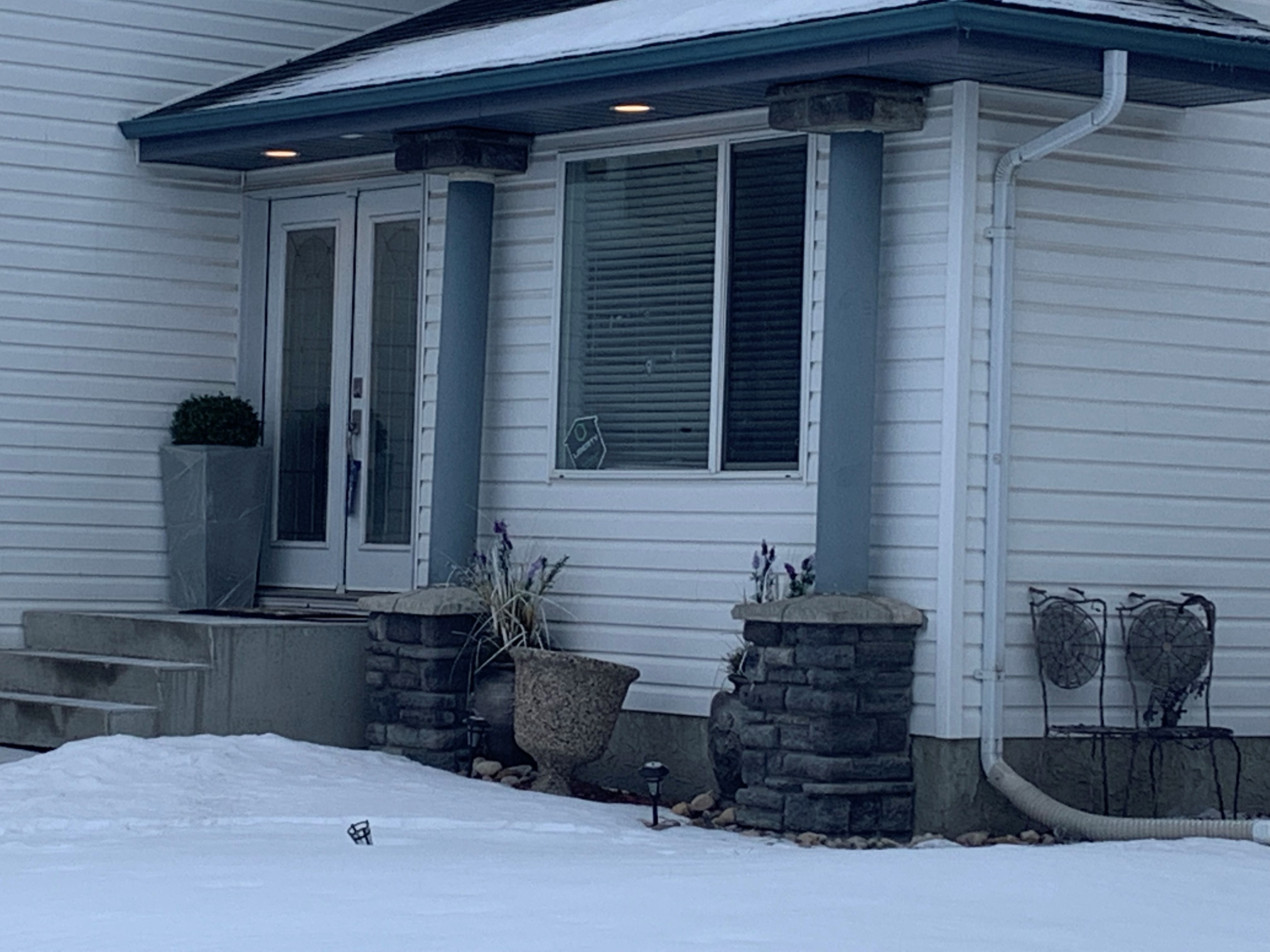 A silver truck parked on an area home’s driveway appeared to have several bullet holes in it, as well as a shattered side window. There also appeared to be bullet holes in the front window of the house.