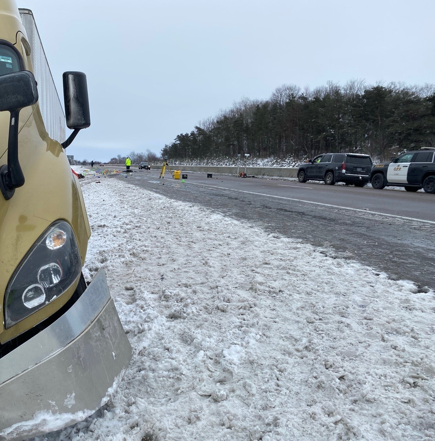 OPP spokeswoman Maggie Pickett said Monday that police believe the van was stopped by the side of the highway when the crash occurred. The investigation into the crash is continuing, and no charges have been laid.