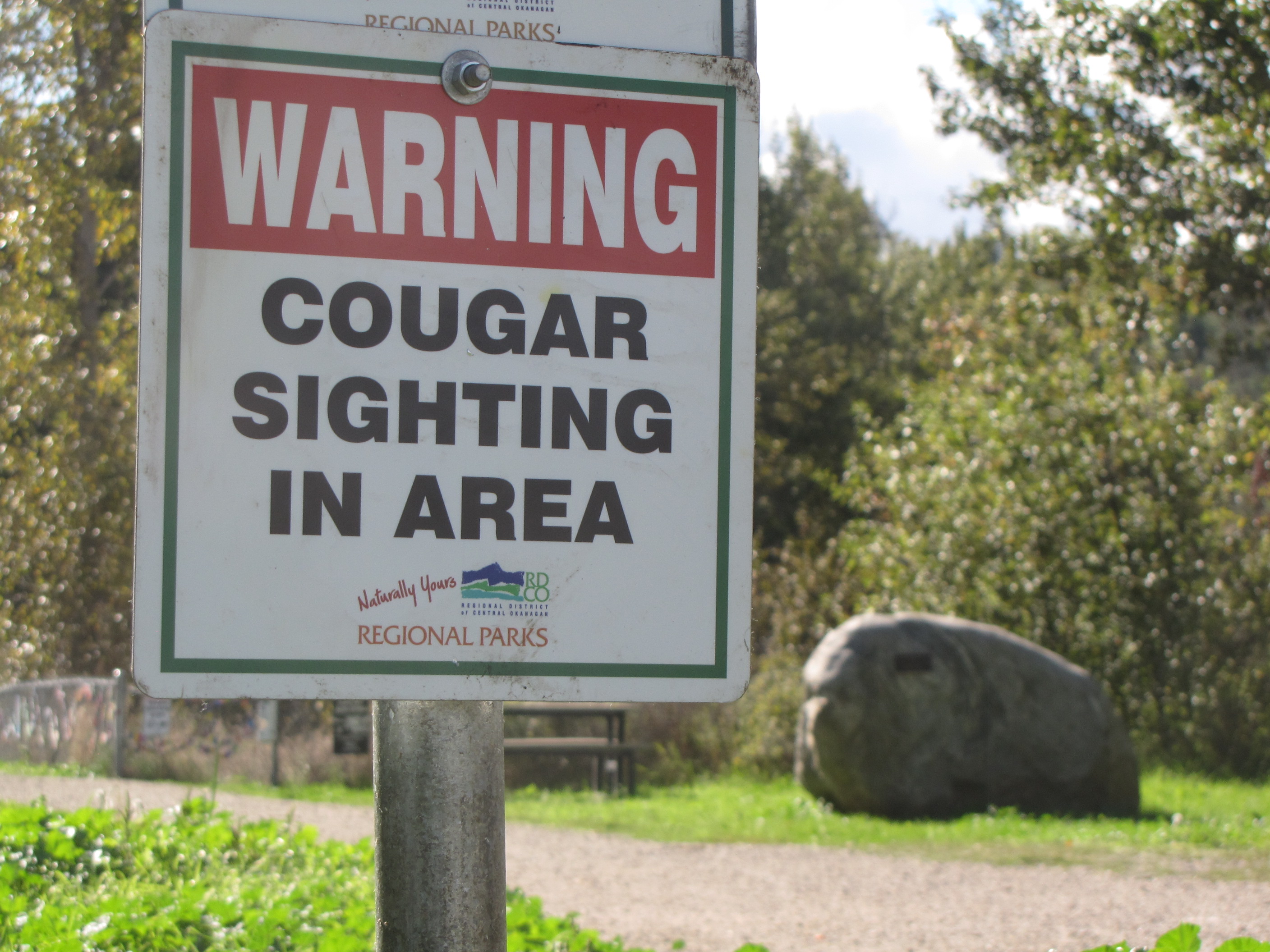 “The Mission Creek Greenway from the Hollywood Road entrance to Scenic Canyon Regional Park to the Layer Cake Mountain Lookout is still open and is not affected by the latest closure. The BC Conservation Officer Service continues to be updated by our staff whenever we receive reports of cougar sightings and activity in the park. ”