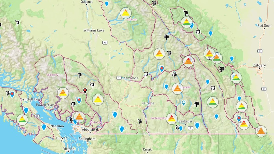 From the Rockies through to the South Coast, along with Vancouver Island, all but three alpine regions in those areas are at Level 3 (considerable risk), with the remaining three regions at Level 4 (high).