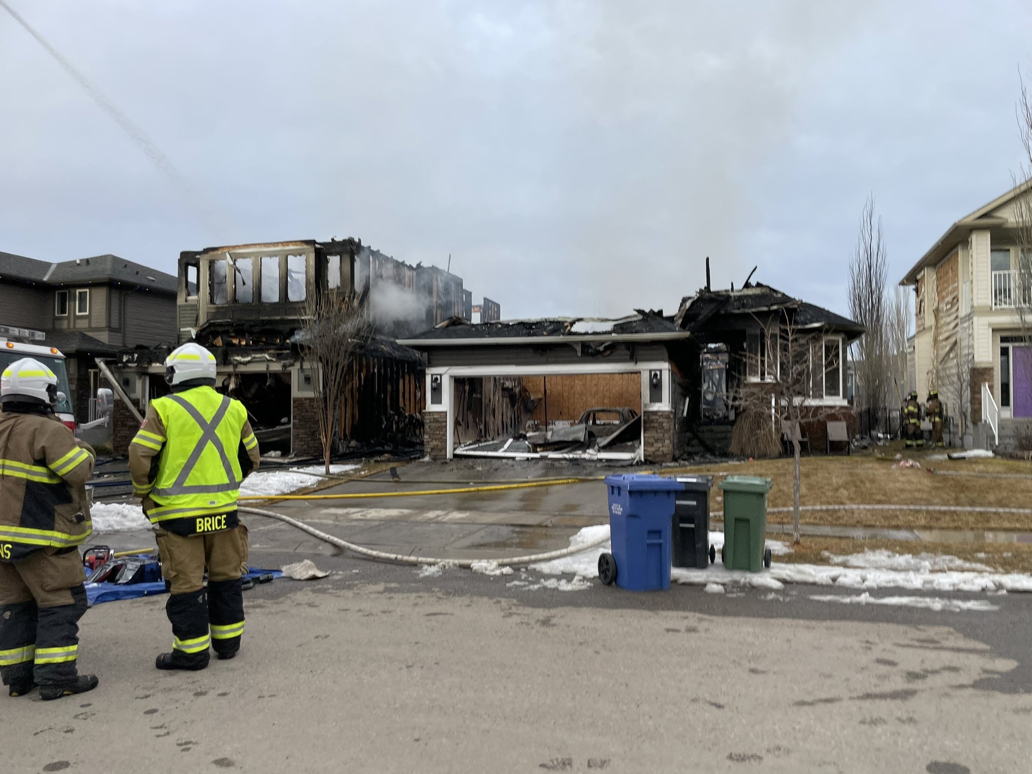 Crews were able to keep the fire from spreading into neighbouring homes, but Brice said the house to the east of the pair had melted siding. The house to the west suffered heat damage, Brice said.