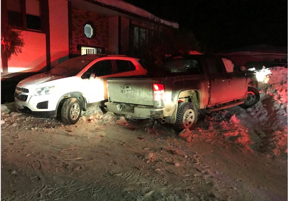 A Thompson, Man., driver has an April court date and a long list of charges after crashing his vehicle into a parked car in front of a home in the northern Manitoba city.