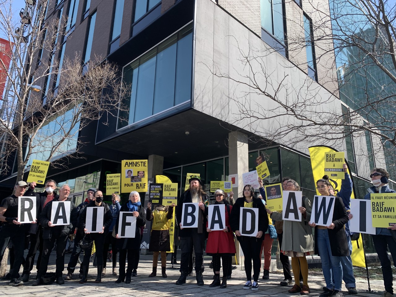 That was the rallying cry of about two dozen protesters in downtown Montreal Thursday during a vigil for Saudi blogger Raif Badawi.