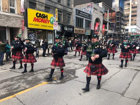 Large crowds gathered in downtown Toronto on Sunday to watch the first St. Patrick’s Day Parade since 2019.