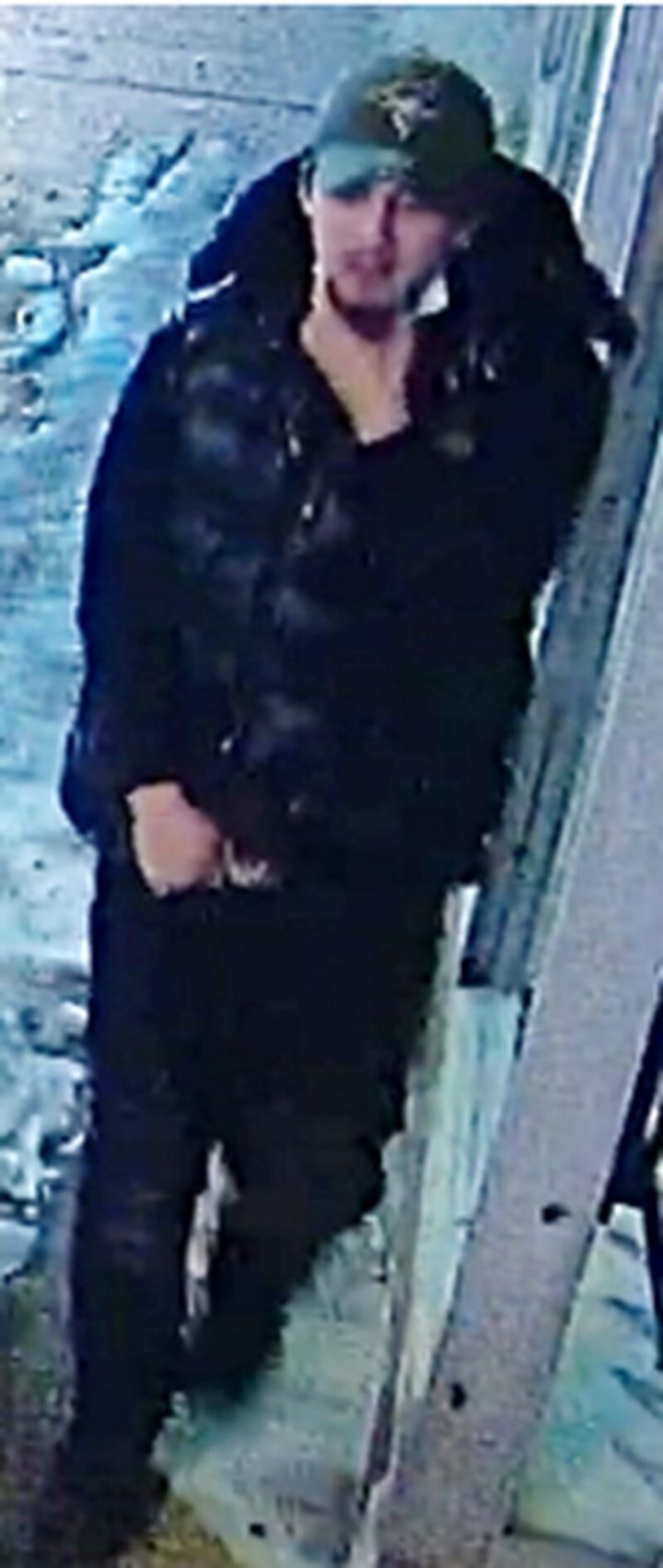 The suspect is 20 to 25-years-old. He was wearing a green Toronto Blue Jays baseball hat, a black winter vest and sweater, black pants and black shoes at the time of the attack, police said.
