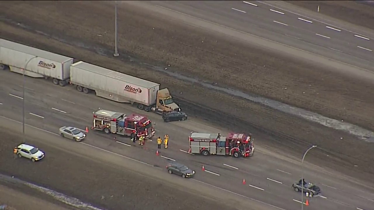 Edmonton police said the collision involved a tractor-trailer unit and two cars.