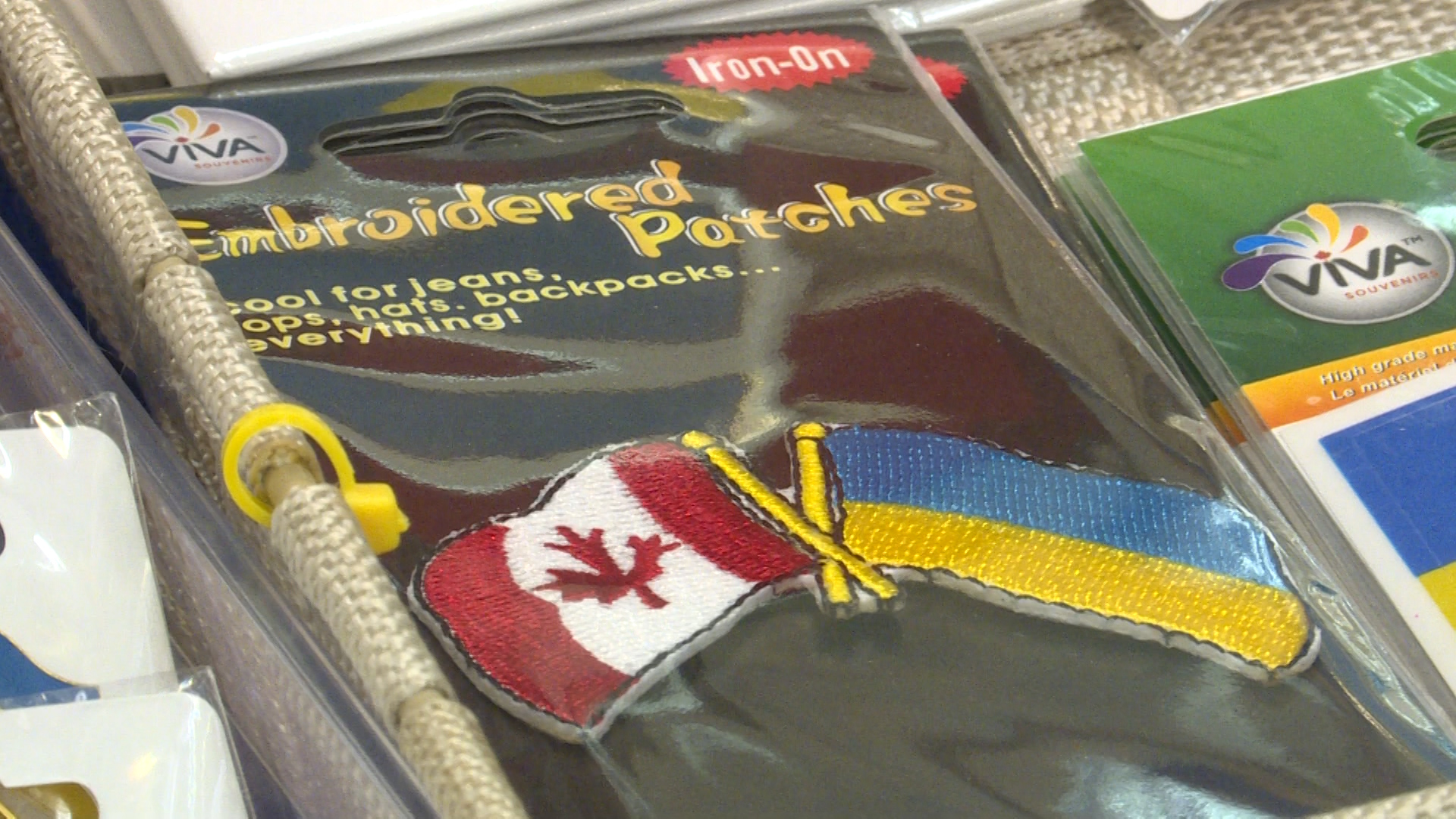 The Commissary is selling Ukraine patches, magnets, car flags, pins and hats.