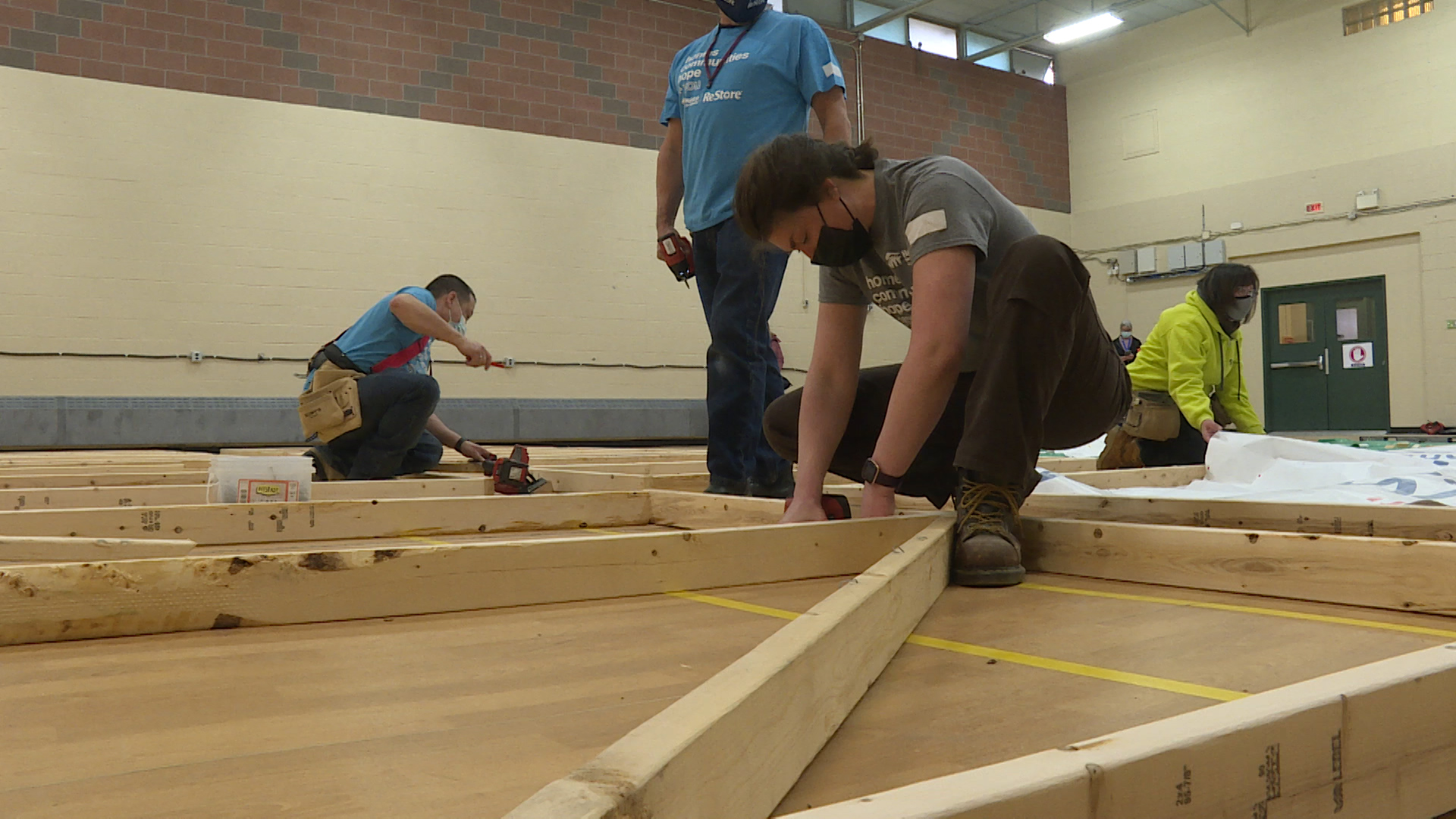 Atkinson Home Hardware has provided the building supplies, with just a week’s notice, and Habitat for Humanity provided the volunteer labour.