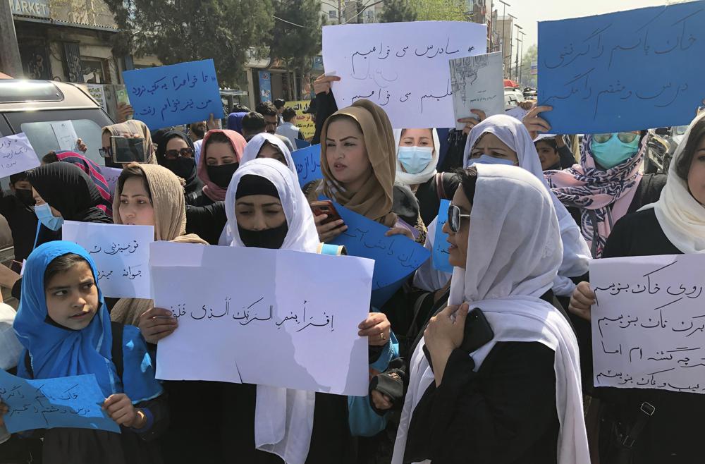 The move enraged the international community, which has been reluctant to recognize the Taliban-run government since the Taliban swept into power last August, fearing they would revert to their harsh rule of the 1990s. The Taliban’s refusal to open up education to all Afghan children also infuriated large swaths of the Afghan population. On Saturday, dozens of girls demonstrated in the Afghan capital demanding the right to go to school.