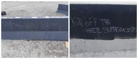 “Kill off the white supremacists!” and “Stop making white babies” was written in what appeared to be white paint.