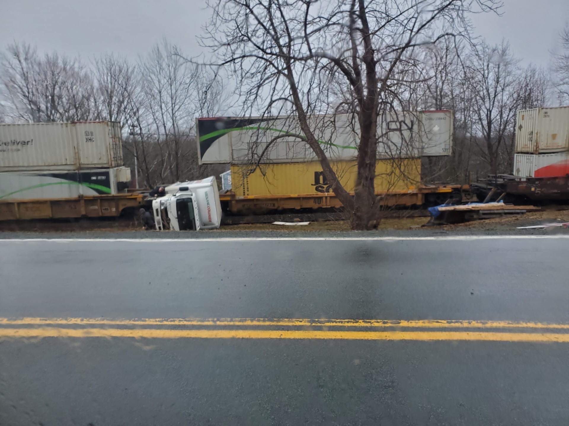 Police in Nova Scotia say a cube truck and a cargo train crashed on Friday morning, north of the Bedford Basin.