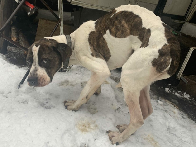 “It was clear he hadn’t been fed or provided water for days. His ribs, spine and hip bones protruded from his skin and when he was let out of the RV, he immediately started licking ice and eating snow for hydration.