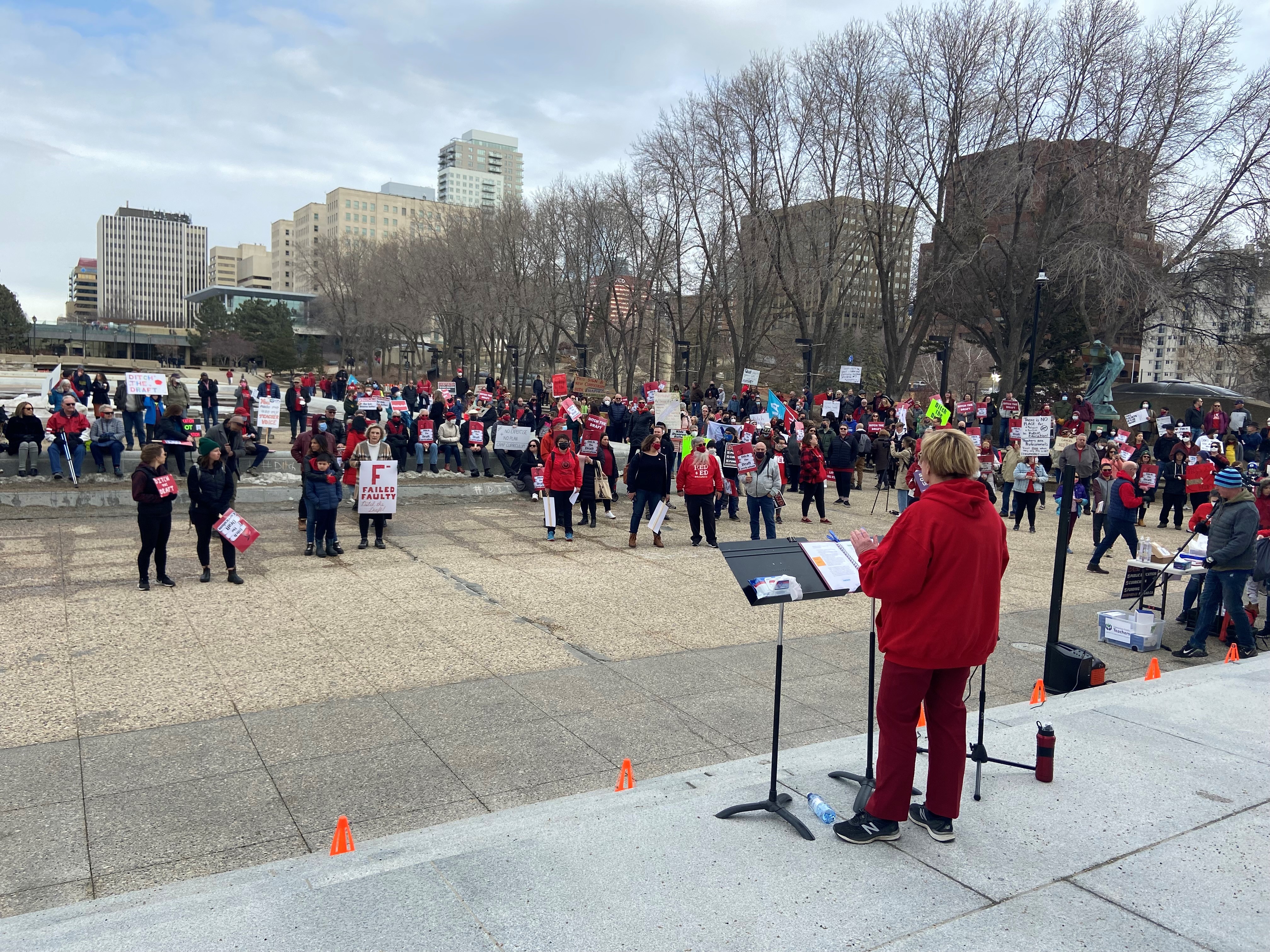 People gathered across Alberta, including in Edmonton and Calgary, on Saturday to rally against the province’s controversial proposed K-6 curriculum.