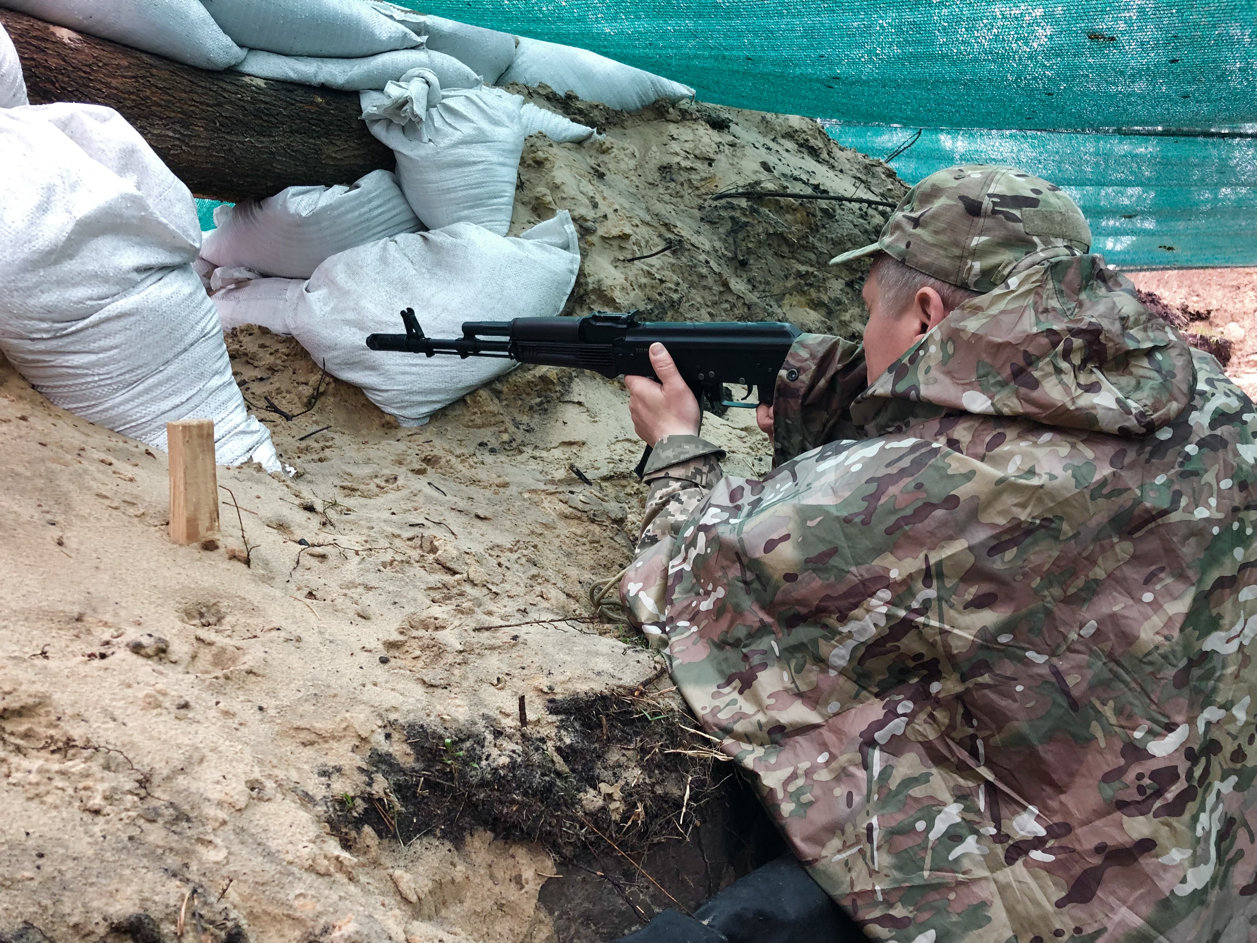 In the trenches around Ukraine’s capital, Alexander Tolinov aimed his Kalashnikov through a gap between sandbags.