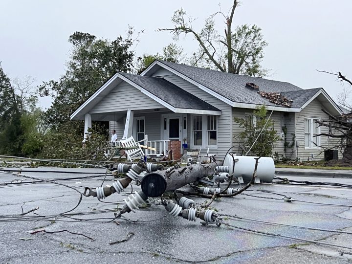 Fallen trees and limbs closed a stretch of highway for hours in Newton County, Mississippi. As storms pushed into Georgia, a large tree fell and crashed through the roof of Marie Jordan’s home in metro Atlanta, coming down in the living room, kitchen and garage.
