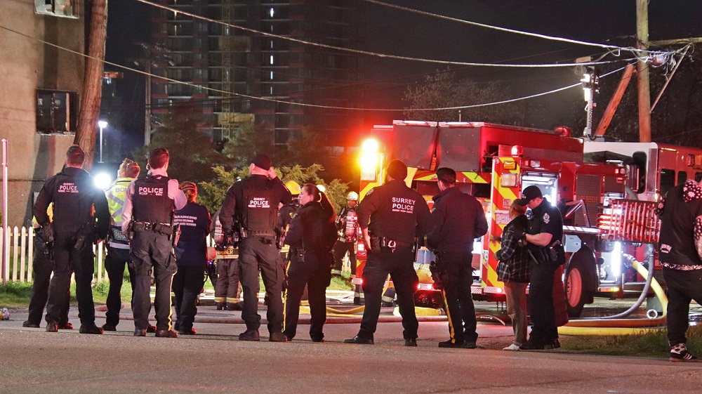 Surrey RCMP said crews responded to the fire at an older building on Whalley Boulevard and 107A Street around 8:20 p.m.