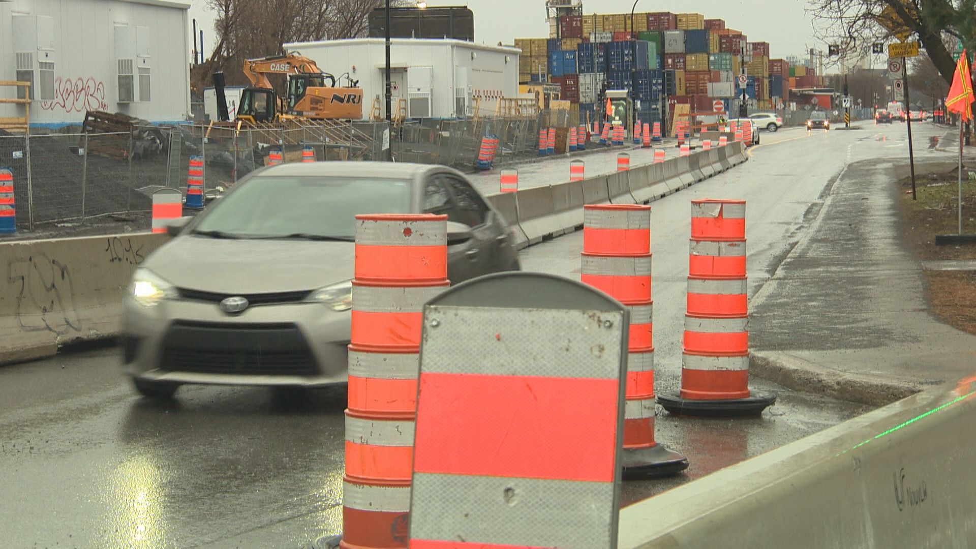 Work on the future electric rail network is causing traffic snarls on a major artery of Montreal’s Sud-Ouest borough.