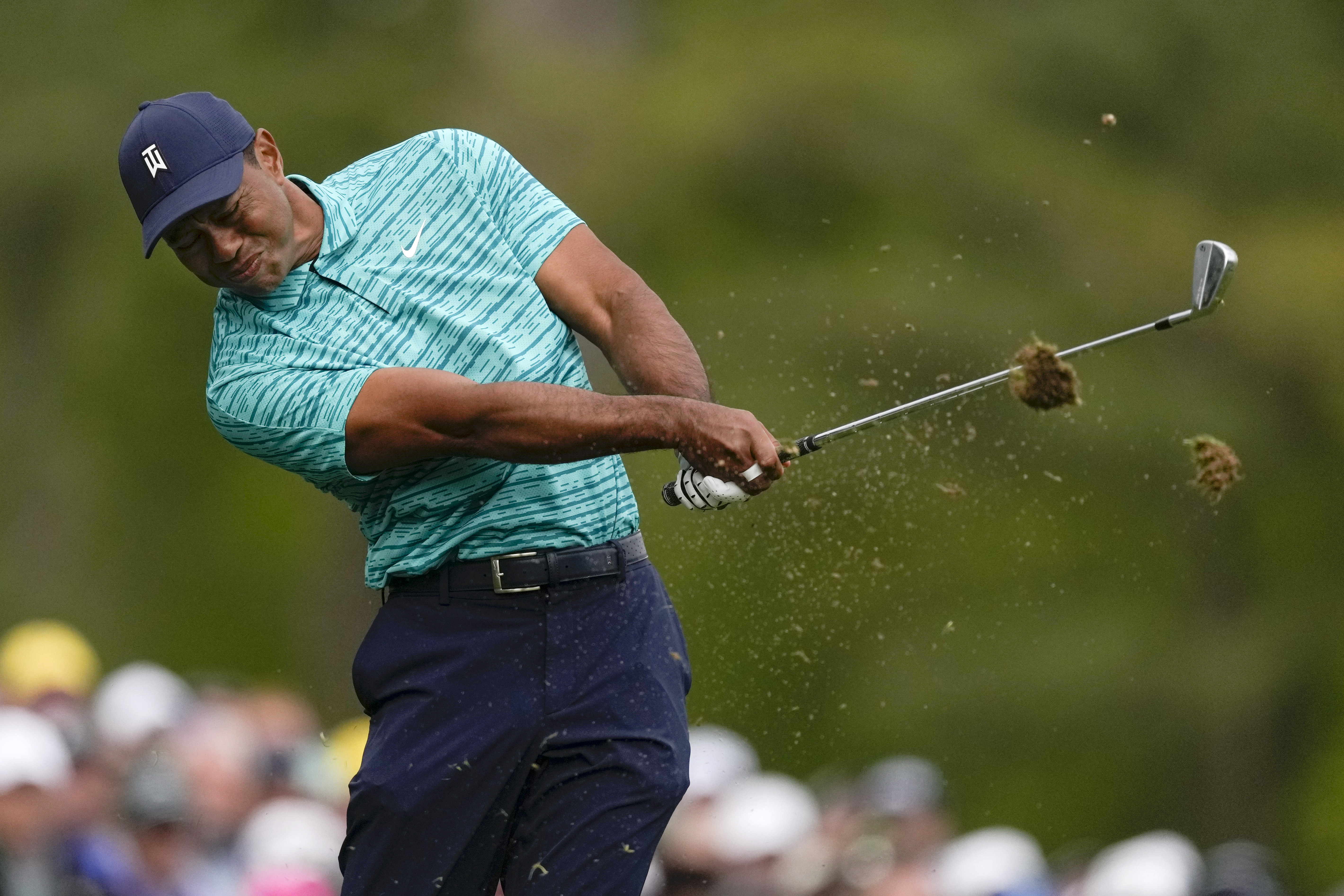 Woods made it through another hike along the undulating terrain of Augusta National, his limp more noticeable from a right leg held together with rods and screws from his car crash 14 months ago.
