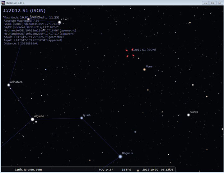 TORONTO – Though it is still unknown whether or not Comet ISON will be the “comet of the century,” the icy body is making a close pass of Mars on Oct. 1.