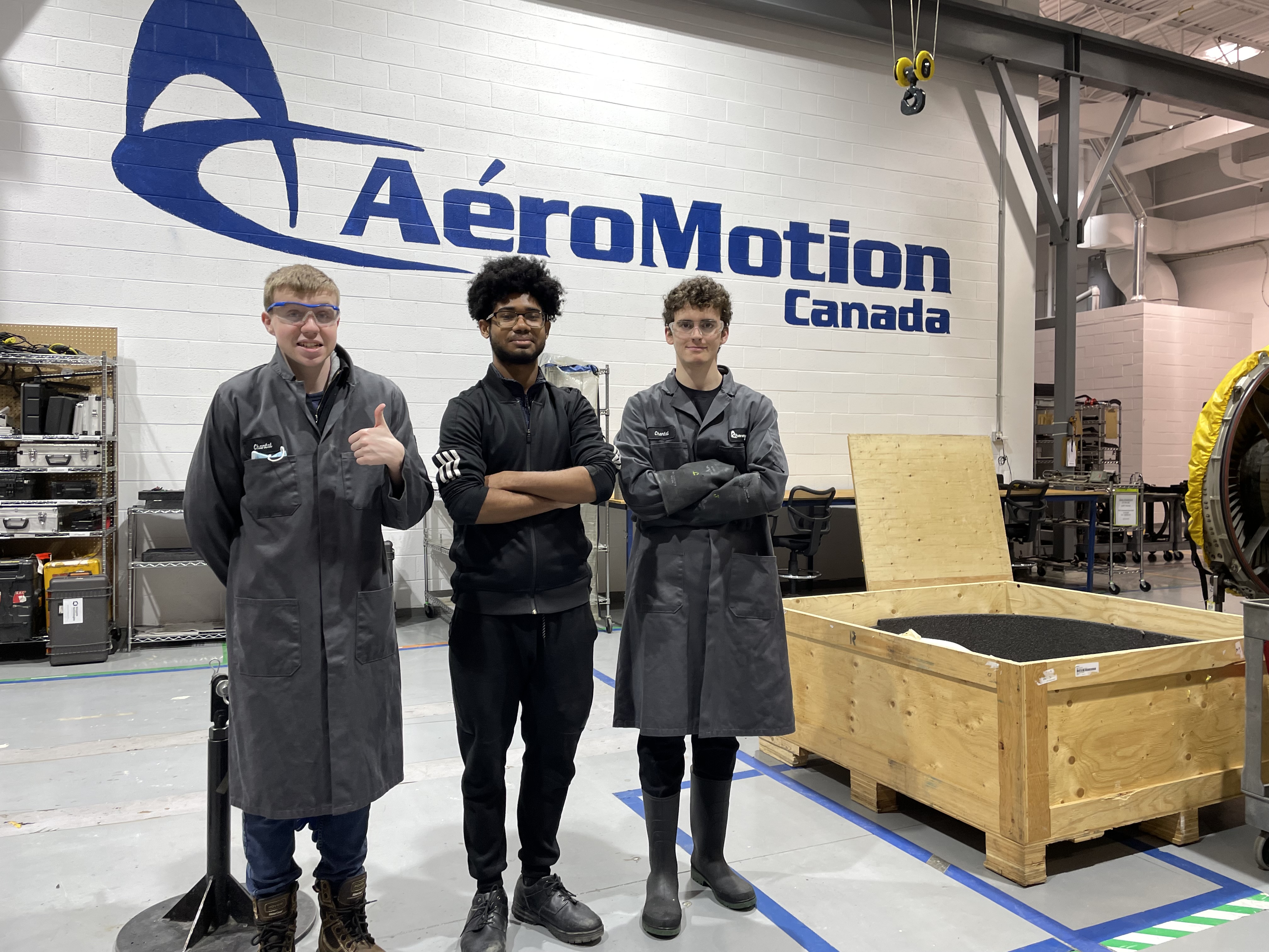 Today, three students have internships at Aeromotion — and they do all kinds of tasks, from cleaning parts, to scanning documents and working in shipping and receiving.