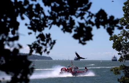 A search by a coast guard hovercraft, a port authority vessel and a rescue helicopter has turned up no sign of the man.