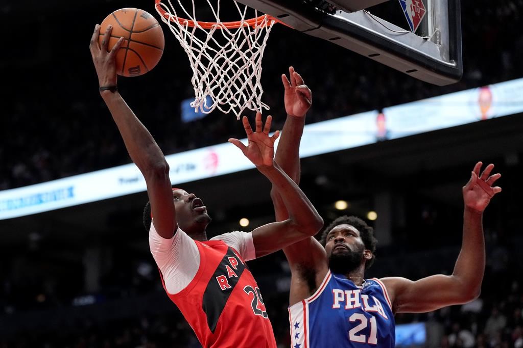 While the Raptors don’t have anyone on the roster that can match the 280-pound Embiid in size, Precious Achiuwa said they have speed and length.