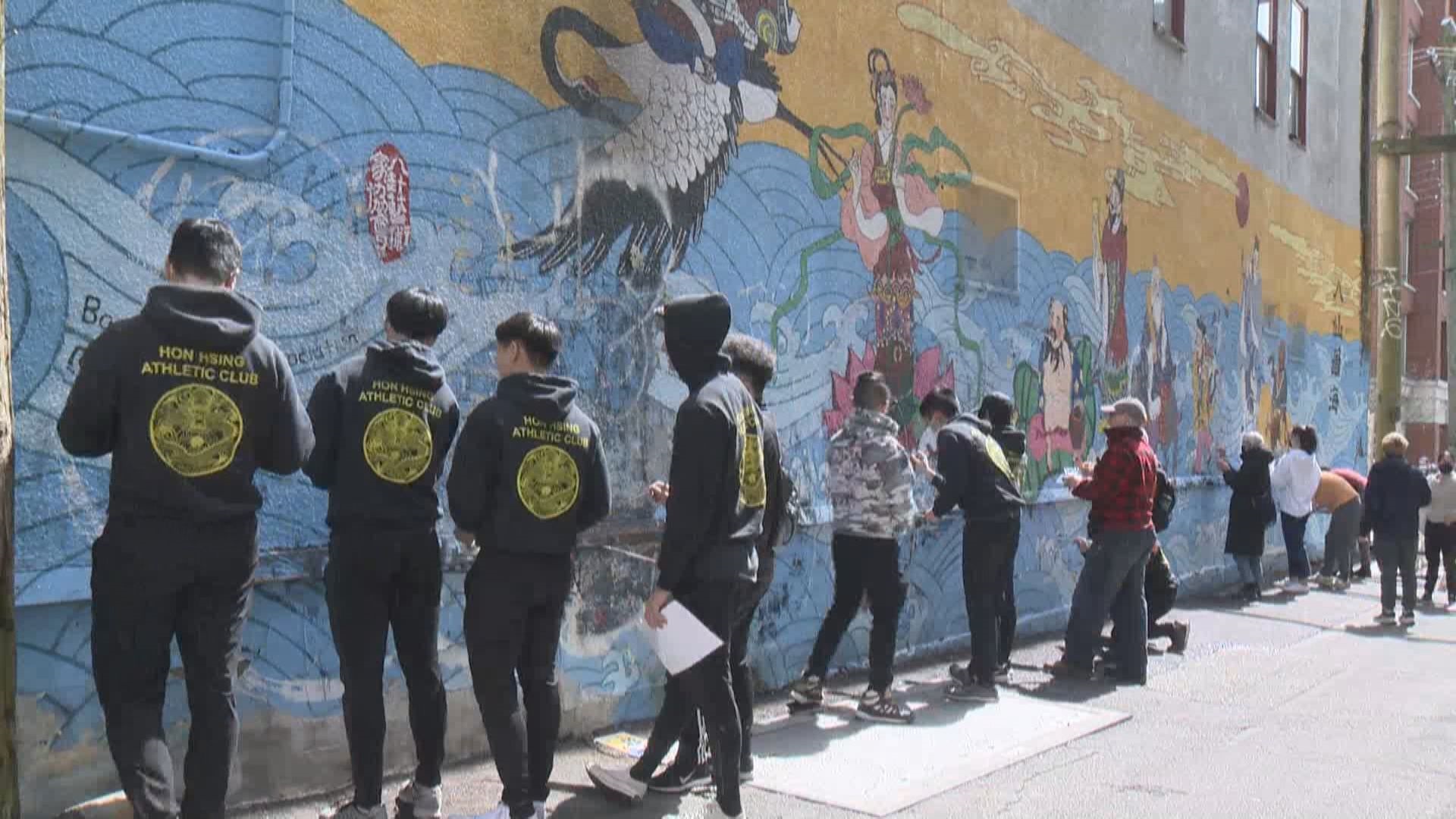 The Vancouver artists behind a culturally significant Chinatown mural defaced with graffiti vandalism last month invited people from the community to help repair their work on Saturday, and the response was overwhelming.