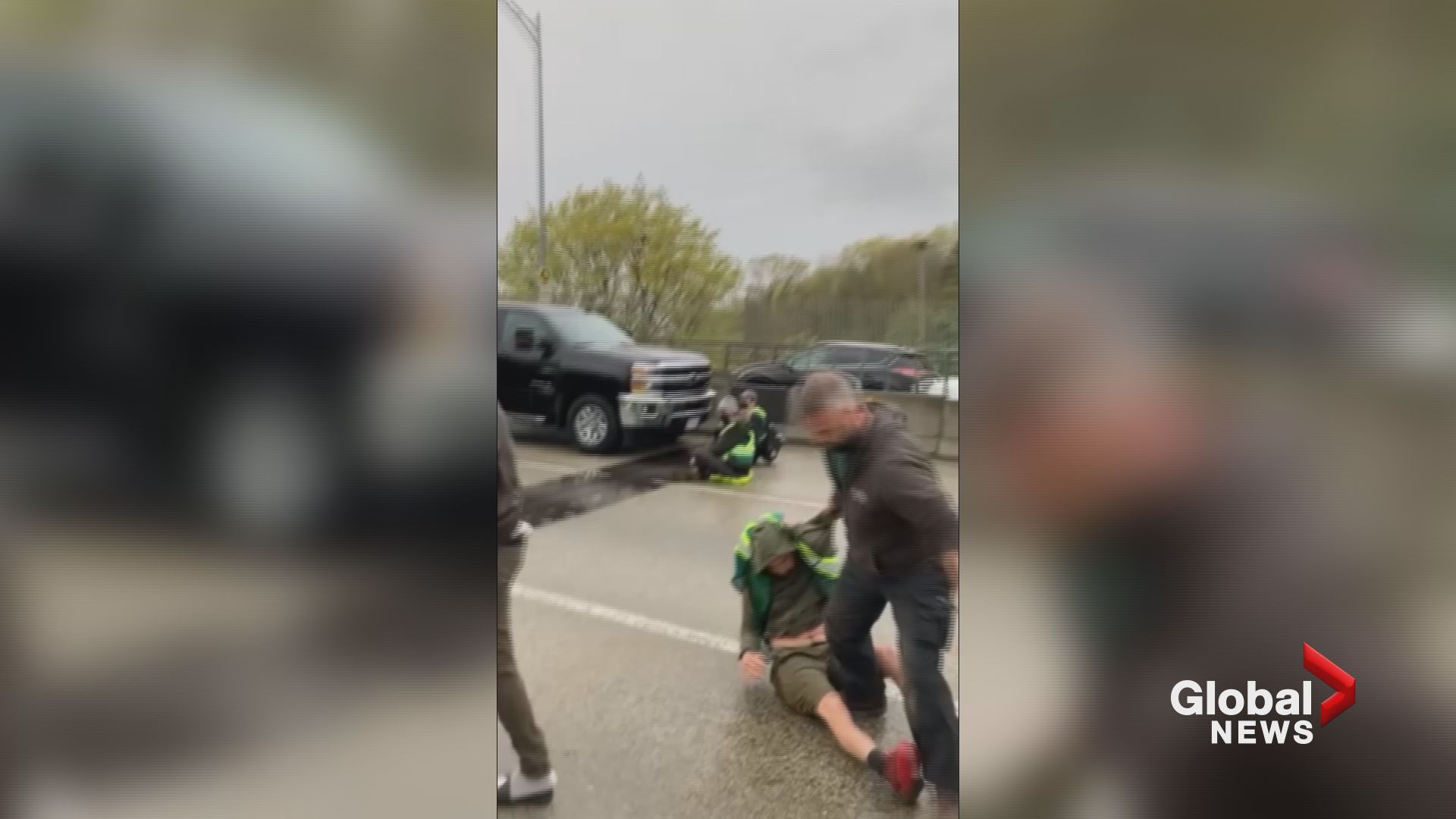 Vancouver police were soon on the scene to clear the protesters and allow traffic to move again, police said in a release.