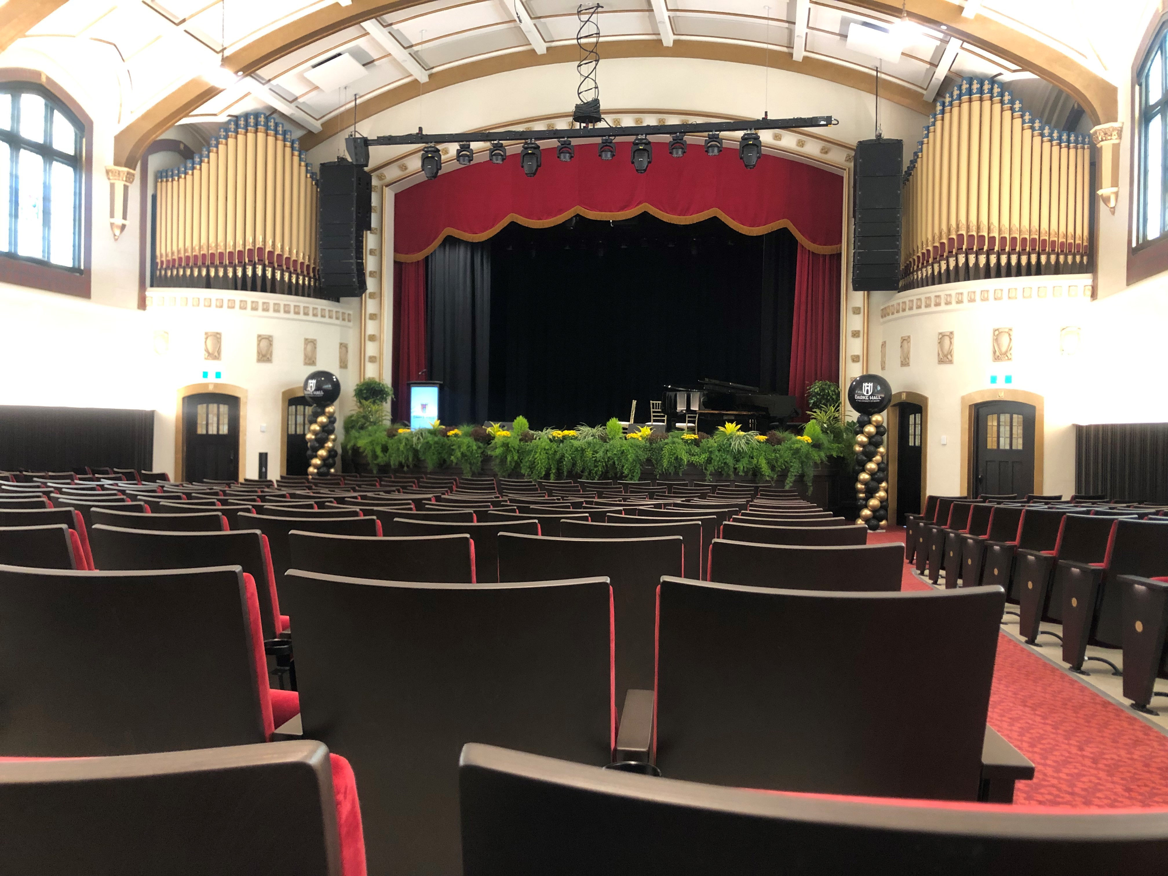 The new and improved Darke Hall features 474 seats, which is a reduction from its original capacity.